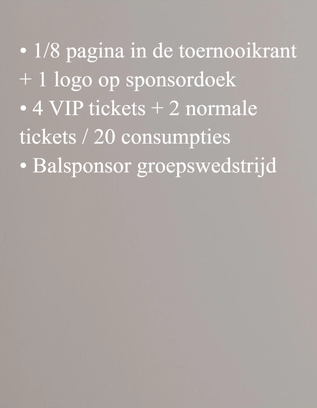 Onderstaand ziet u een indicatie van de verschillende sponsorpakketten maar uiteindelijk komen we graag in overleg met u tot een passend sponsorpakket